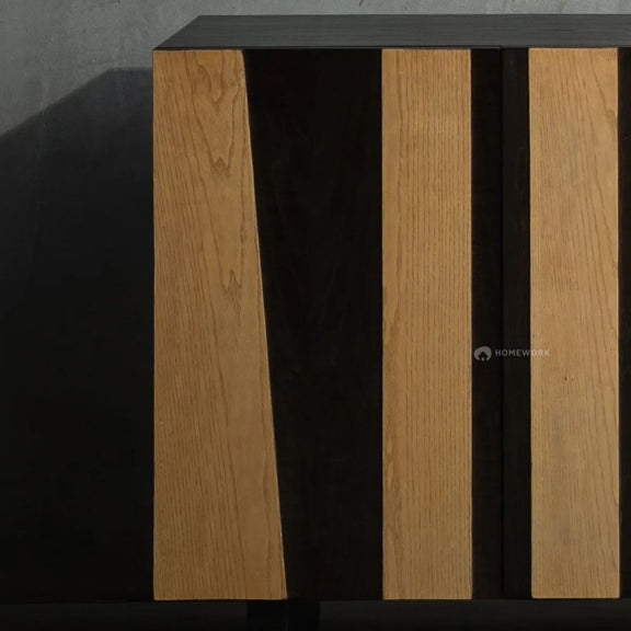 Elevate your interior with the Edita Console, a statement piece that masterfully blends geometric precision with organic warmth. Crafted from premium Ash wood and Ash veneer, the Edita is defined by its rhythmic interplay of light and dark tones. The striking vertical stripes create a dynamic visual texture, transforming a functional storage unit into a work of modern art.