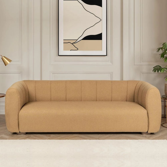 Meet the Fior sofa, inspired by the graceful bloom of a flower. Its tufted fabric lines resemble delicate petals, adding a touch of nature's beauty. With smooth curves, this sofa seamlessly fits into both casual and formal settings, complementing any interior style. Supported by sturdy solid wood legs, it enhances design harmony. Whether in a cozy living room or an elegant lounge, the Fior sofa brings organic inspiration and timeless elegance to any space.