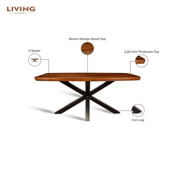 Crispio Wooden 6 Seater Dining Table with Iron is a perfect harmony of rustic elegance and industrial strength, crafted from rich mango wood and sturdy iron. Its sleek rectangular design, featuring a smooth wooden finish and a spacious tabletop, offers both functionality and sophistication