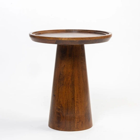 Ruppet is a striking coffee table crafted from solid mango wood, designed to blend natural beauty with sculptural elegance. Its circular top offers a smooth, spacious surface, while the conical base adds a bold, artistic touch that instantly becomes the focal point of any room. This product is machine made, making each piece truly one of a kind! This craftsmanship ensure no two items are exactly alike, adding a personal touch to your decor
